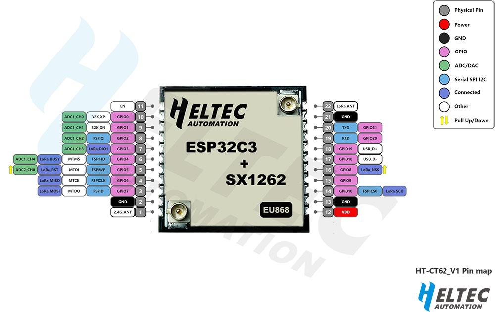 HT-CT62, ESP32C3 + SX1262 LoRa Node, Meshtastic and LoRaWAN Compatible
