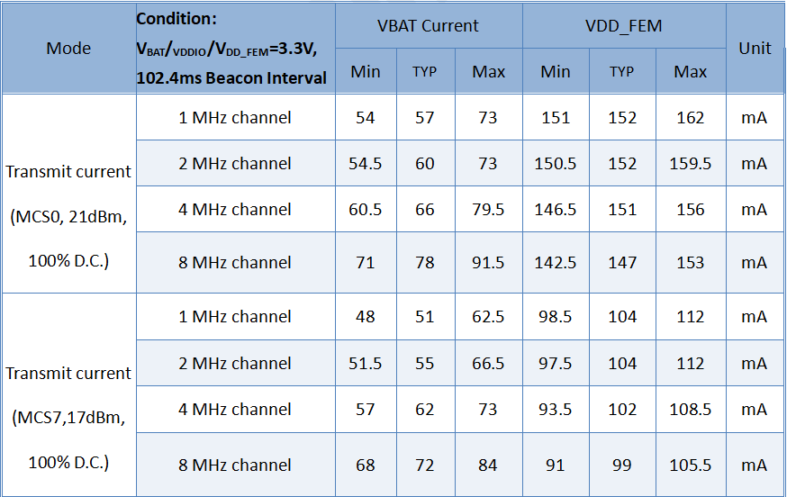- Channel bandwidth options of 1/2/4/8 MHz.